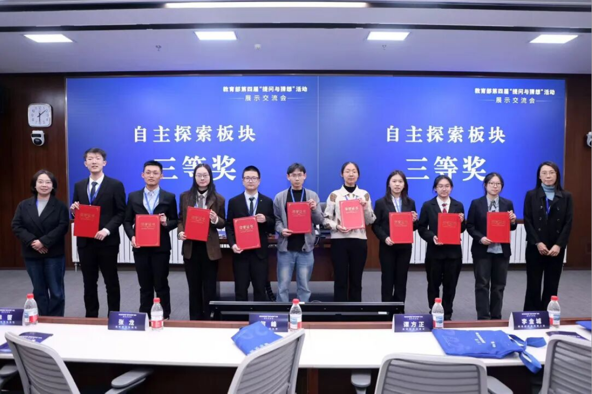 近日,教育部第四届“提问与猜想”活动展示交流会在清华大学圆满落幕,我院拔尖计划2.0学生陈钿及陈博洋、赵海涵、廖亮、梁绮悦团队荣获三等奖,指导教师为吕志跃教授、柏川教授。