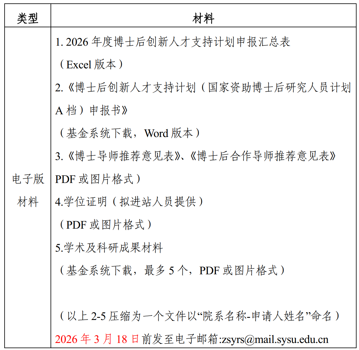 根据《全国博士后管委会办公室中国博士后科学基金会关于开展2026年度国家资助博士后研究人员计划(含博士后创新人才支持计划)和博士后科研业绩评估考核资助申报工作的通知》(博管办〔2026〕3号),现就开展我校2026年度博新计划申报工作通知如下:
