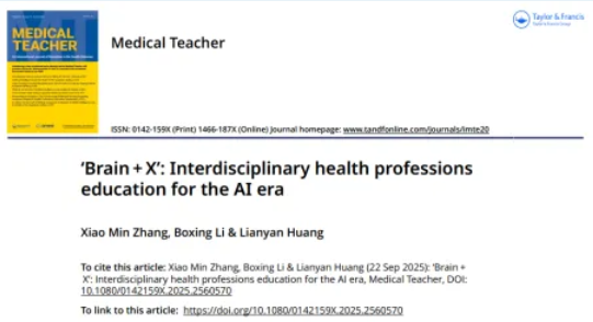 随着人工智能技术深刻改变医疗行业生态,医学教育面临转型升级的迫切需求。近日,我院张小敏、李勃兴与黄潋滟教学团队在人工智能与医学教育融合方面取得重要进展,相关教学研究成果发表于医学教育领域知名期刊《Medical Teacher》。该期刊专注于医学教育研究及教学方法创新,是国际医学教育界的著名学术平台。此项成果标志着我院在“AI+医学教育”改革中迈出坚实一步,为未来智慧医学人才培养提供了新范式。