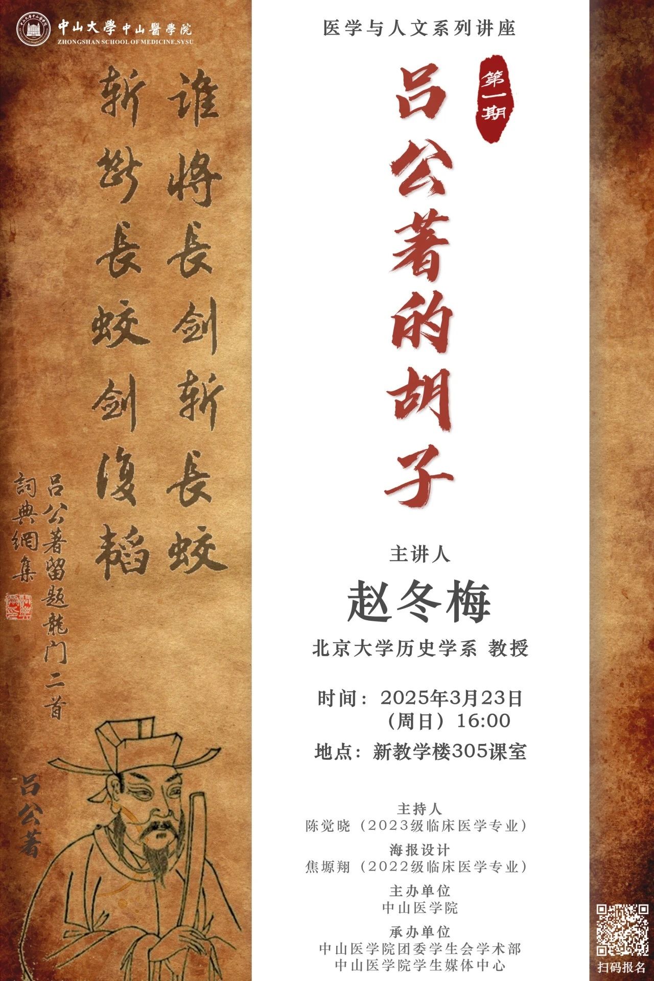 导航痕迹 成人直播 科学研究 学术讲座 医学与人文讲座第一期:吕公著的胡子 科学研究 科研通知 学术讲座 科研平台 办理指引 医学与人文讲座第一期:吕公著的胡子 发布人:张玉琦 发布日期:2025-03-20