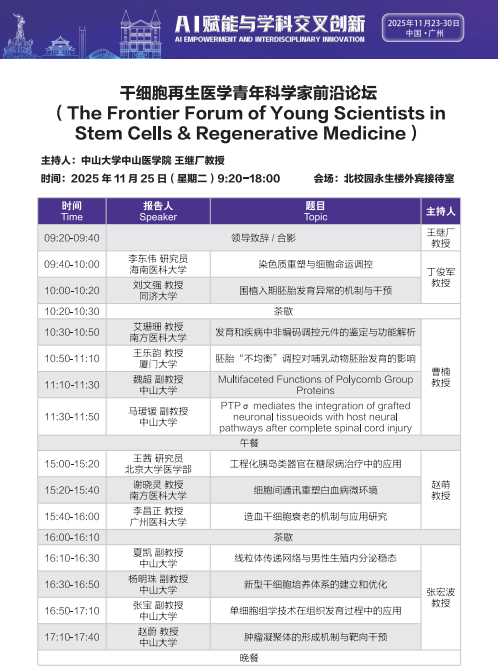 导航痕迹 成人直播 科学研究 学术讲座 干细胞再生医学青年科学家前沿论坛 科学研究 科研通知 学术讲座 科研平台 办理指引 干细胞再生医学青年科学家前沿论坛 发布人:张玉琦 发布日期:2025-11-20